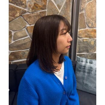 カットは顔まわりにしっかりレイヤーを加えてスッキリと大人っぽい印象に♪